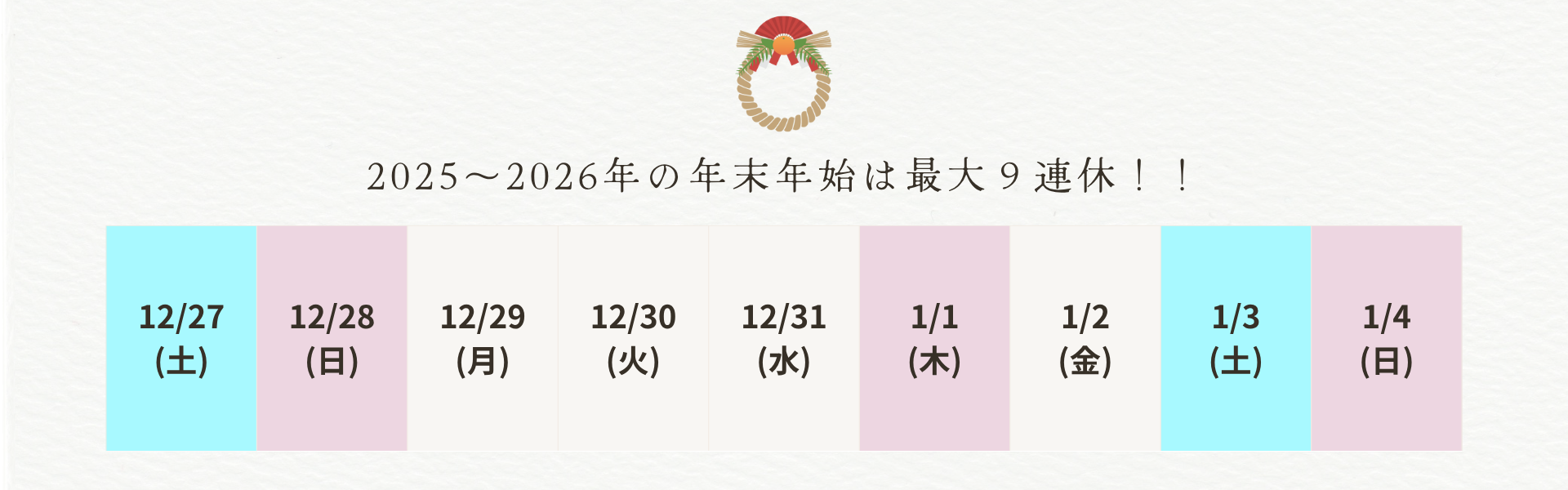 旅の目的、お休み期間に合わせて、自分たちならではの旅をチョイス!2026年の幕開けをいつもとは違う場所で迎えましょう!