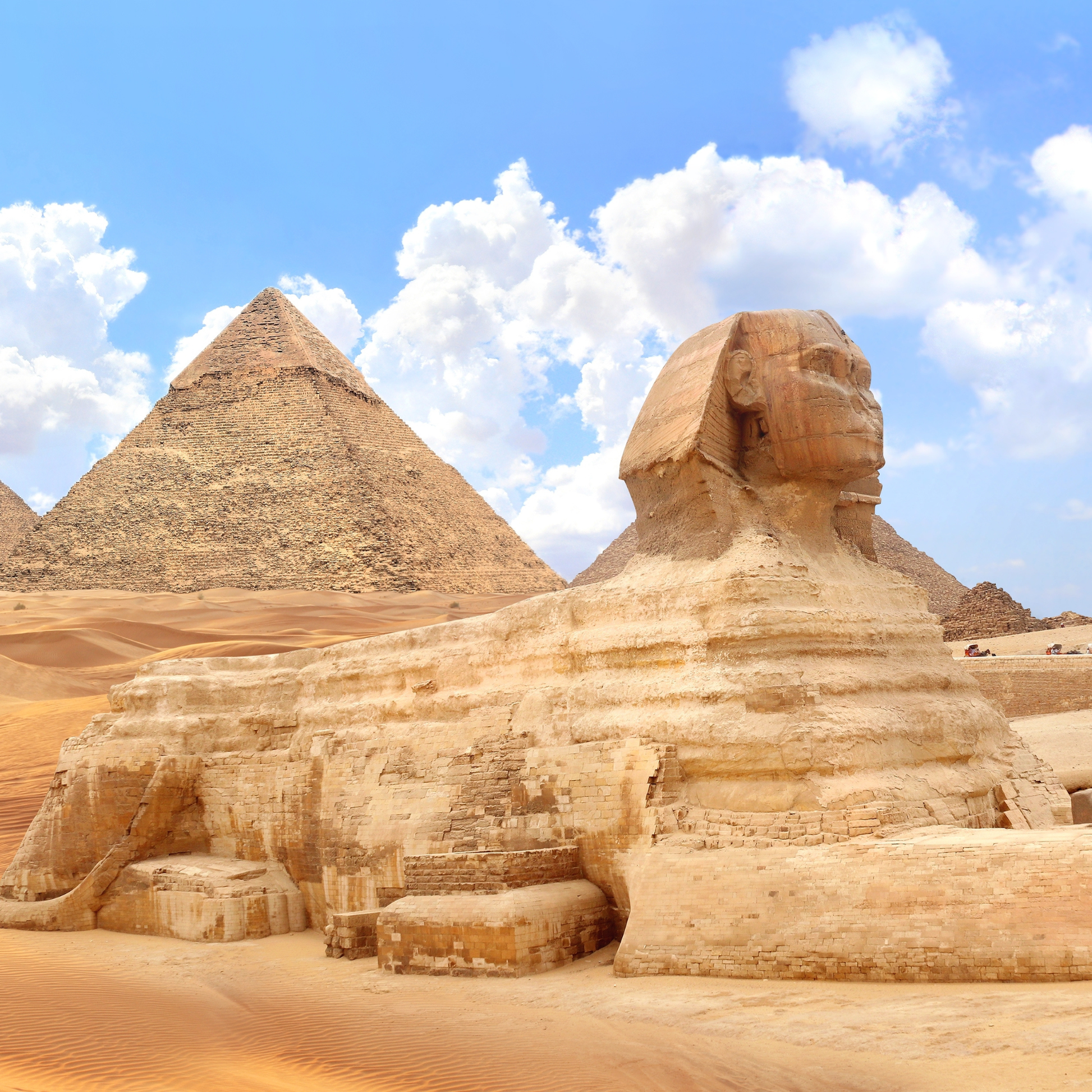 ギザの三大ピラミッド、スフィンクスなど、古代エジプト文明の神秘が今も残る地。
